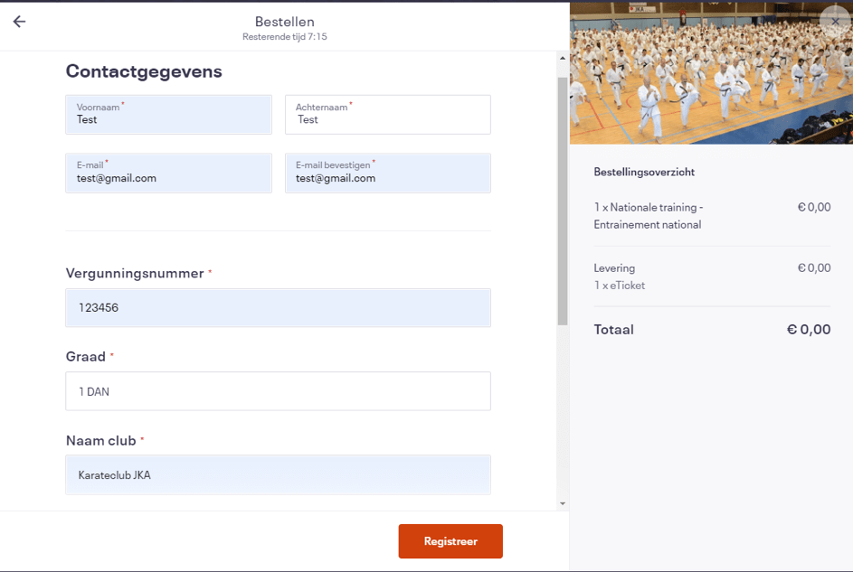 Remplissez les coordonnées du participant puis cliquez à nouveau sur «S’inscrire»