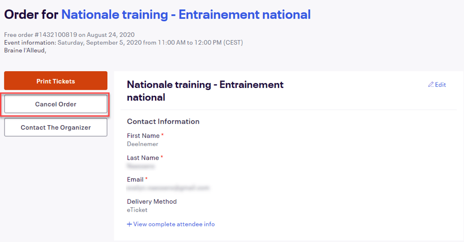 Vous êtes inscrit, mais n’êtes plus en mesure de participer : Dans l’e-mail de confirmation, cliquez sur « visualiser et gérer votre commande en ligne » pour ensuite « Annuler la commande ».